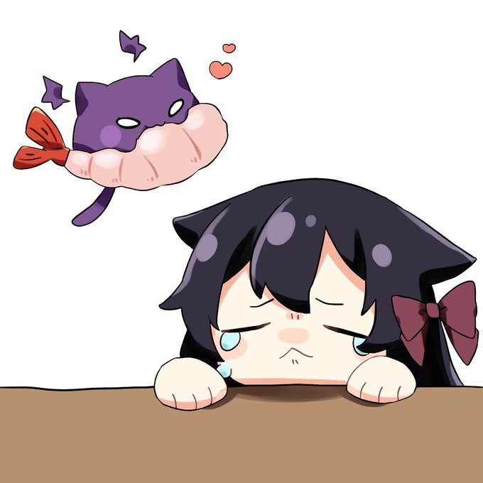 お題は「大きな海老にかぶりつくおはぎを見て、海老を取られて悲しんでいる猫音すずさん」