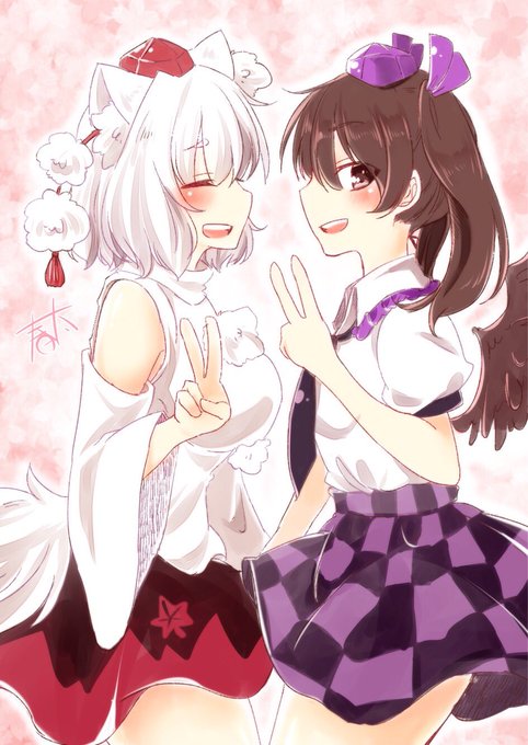 はたて&椛描いたよー(*ノ´∀`*)ノ♡ はたもみ可愛いッッ #深夜の真剣お絵描き60分一本勝負