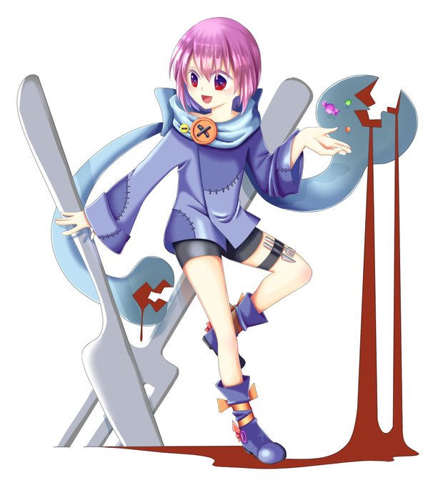 #ツクールMZ #イラスト ルイスの立ち絵。 悪食なので食べてしまうため、つぎはぎにしました。ぱりぱりしたものも食べたいだろうと思ってボタンをつけました。