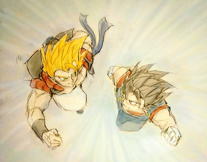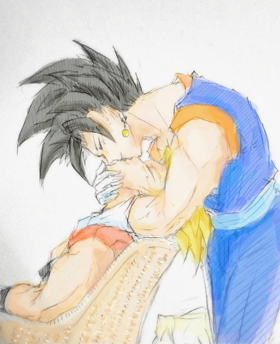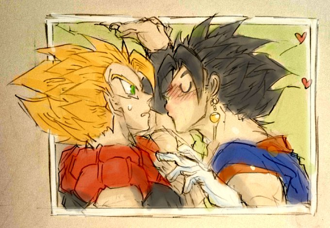 『融合組サンド』 ゴジ→ベジ←ザマ (*腐向け) ゴジベジだけではなく初めて合体ザマスでも描いてみました。😉💕 ( ੭´꒳`ᑦ )💕 #ゴジベジ #DB #融合組