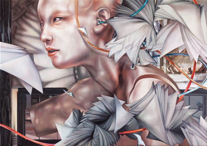 ・油彩、ジェッソ、綿布、パネル