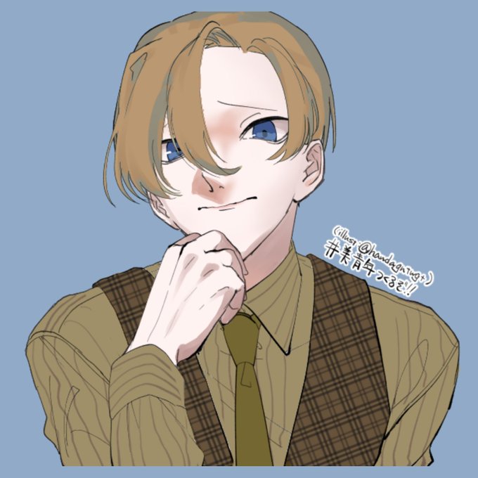 顔面偏差値の高い苦労人(特に女難)のノット現代人。レトロなアメリカンイメージだったので全体的にブラウン。見えてないけどズボンはベストと同じ生地同じ柄。靴は革靴で全体フォーマルタイプ。