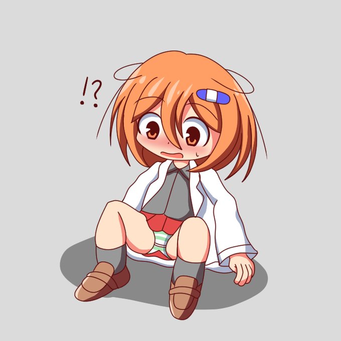 尻もちをついて無防備になってしまい白パンツが見えていることに気づいて頬を赤らめながら立ち上がろうとしていますがおしりの違和感にはまだ気づいてないようですね………😋