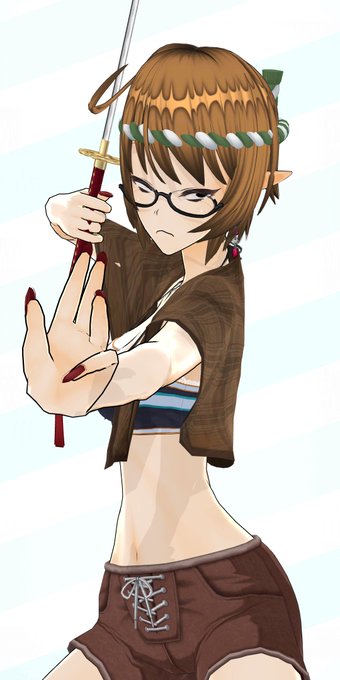 水性昆虫タガメ、ミズカマキリ、タイコウチを混ぜた目付きが悪い虫の擬人化ちゃん!刀、祭、肉、魚が好き!