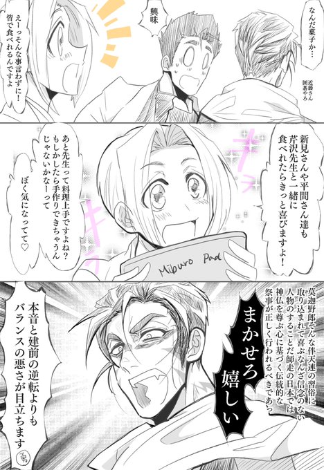 近藤さん・沖田くん・芹沢先生・清河先生・鉄舟先生・御神酒徳利が参戦です。全員わちゃわちゃ仲良し