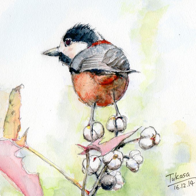 初めて描いた鳥の水彩も