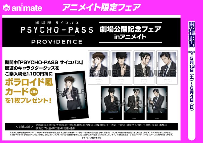 アニメイト一部店舗にて『「劇場版 PSYCHO-PASS サイコパス PROVIDENCE」劇場公開記念フェア in アニメイト』が開催決定!