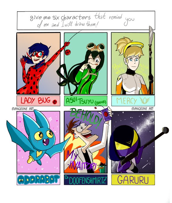Thanks for the suggestions squad! Be sure to check out the original creators works :D @bakertoons @thestatus_Quo @DizzyWizard101 @EvenlyEvi @EponymousSir @ArtsandGoodies #SixFanarts #SixFanartsChallenge #SixCharacters