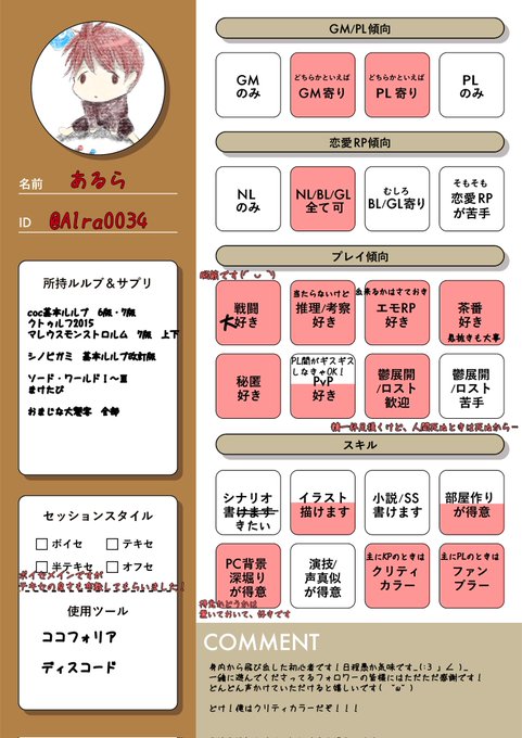 #TRPG自己紹介シート