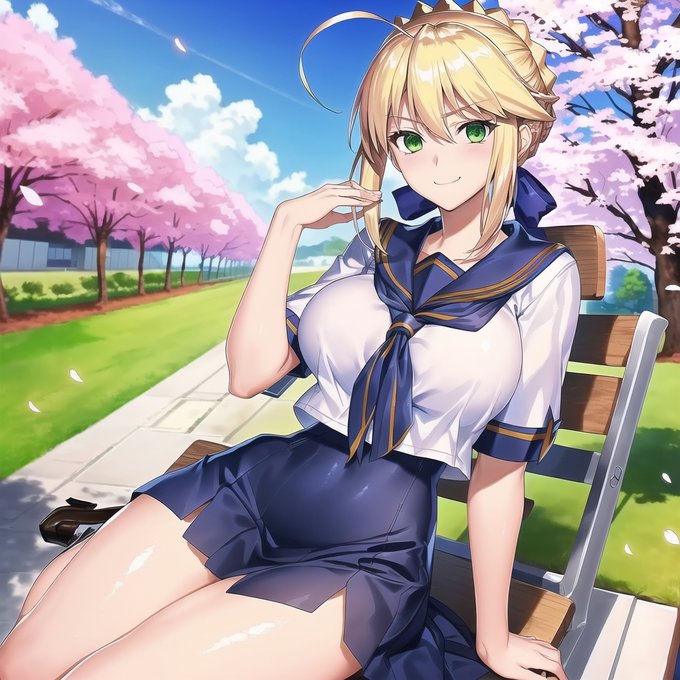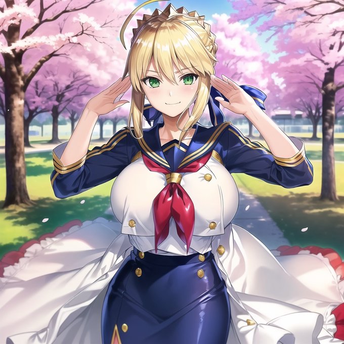 春桜セーラー服乳王ポーズ集A04 #AI生成作品 #CG・イラスト #Fate/GrandOrder #FGO #アルトリア・ペンドラゴン(ランサー) #乳王 #コスプレ #セーラー服 #桜 #春 https://t.co/Z6aEBuyjLV