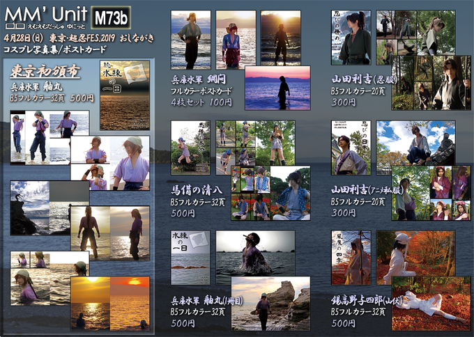 【ご案内】4/28 超忍FES.2019にサークル参加します。スペースはM73b、サークル名はMM'Unitです。舳丸コス写真集(2月福岡新刊)が東京初売りとなります。立ち読みだけでもどうぞ!