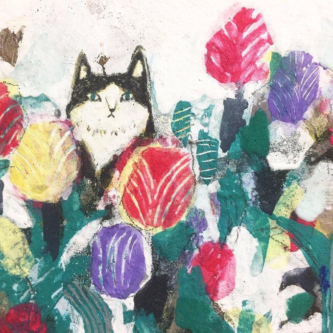 私はお雛様の作品1点、春らしい作品を4点出品します。ハチワレ猫もその中の一部です
