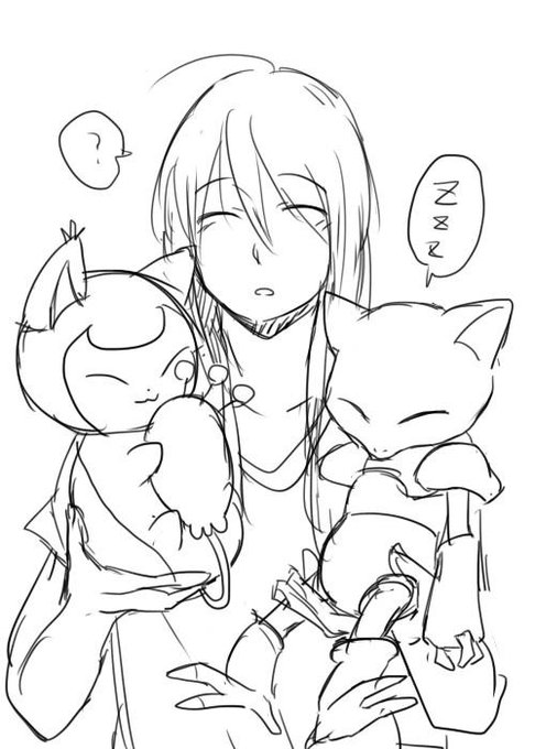 しこふみさん(@unpokoriyo)が私の線画に色を塗ってくださったので自慢させてくださいデュフフ(´`* 寝てるキタロをニコニコ眺めるファルロスというお題! 美し切ない透明感マッハで転げる…! ありがとうございました…!