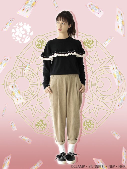 胸元から袖に施したフリルがポイントの着心地柔らかなニットプルオーバー💕友枝中学校の制服をイメージしたカラーのラインは、子供っぽく見えないよう計算された幅になっています✨