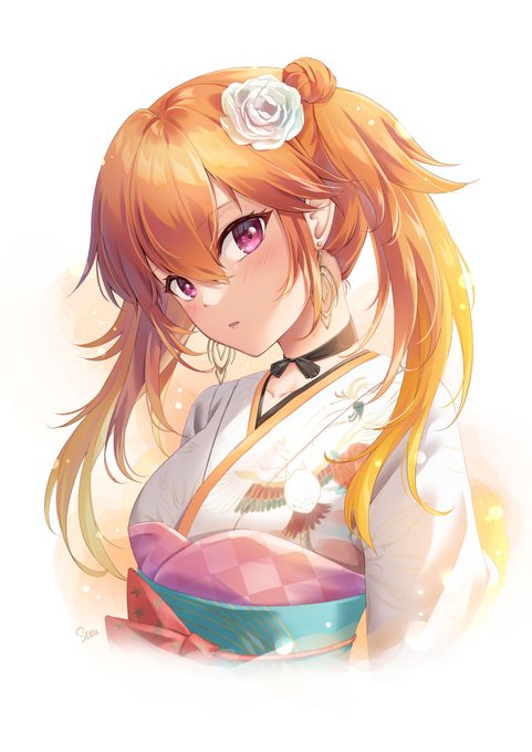 Twin tail kimono outfit is so cute!