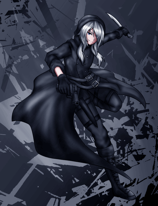 武器は銃とナイフ。二丁拳銃で戦うこともあれば、双剣に切り替えて素早く斬り込むことも。