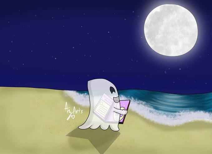 #azaria_arts #DigitalArt #OC #Winstin #winstintheghost #moon #ocean #beach #storybook #fairy #fairytale #night #illustration