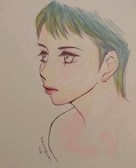 コピック用ではない、ちょっとザラザラした紙に、ねちねちとコピックを重ねたり溶かしたり。頰の赤みとか、塗るのおっかなびっくり。これは…たのしい…。