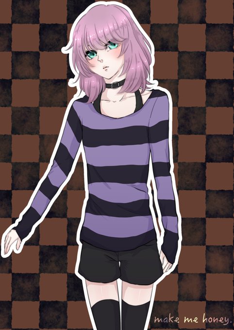 全然カラーで描いてないけど、うちのサイト看板娘すももが緑目です〜!私の創作キャラで一番の古参。茶髪緑目好きです……!