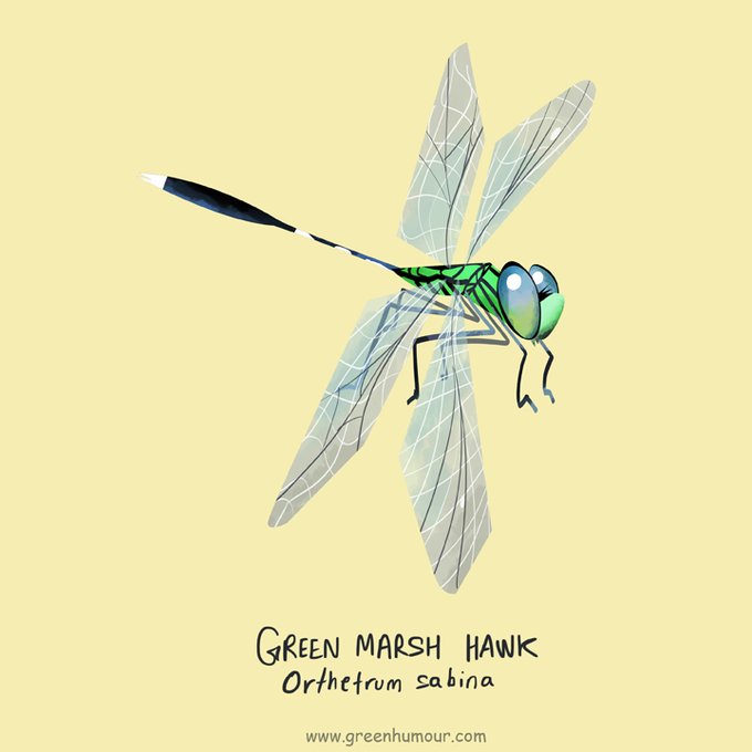 #Illustration # 10 in the #homebiodiversity series: A combat chopper that crash-landed in our living room after a brief thunderstorm today evening, but flew back to safety- the Green Marsh Hawk (#dragonfly ). Thanks to my brother @paintedbat for the ID!