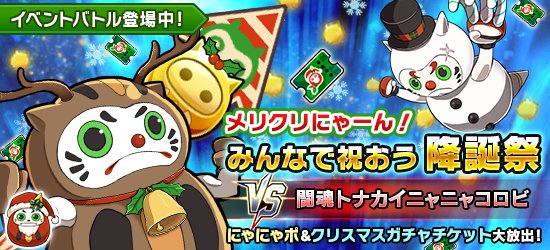 「クリスマスガチャチケット」が手に入るイベントバトル「メリクリにゃーん!みんなで祝おう降誕祭」が毎日以下の時間で登場中!