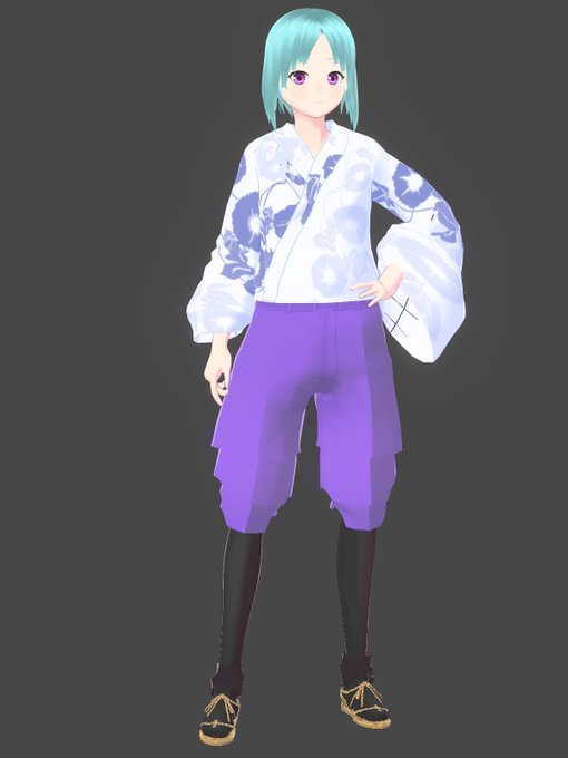 淡い青の方は半ズボン単体で。ポーズを取るとそれなりに見えるね。