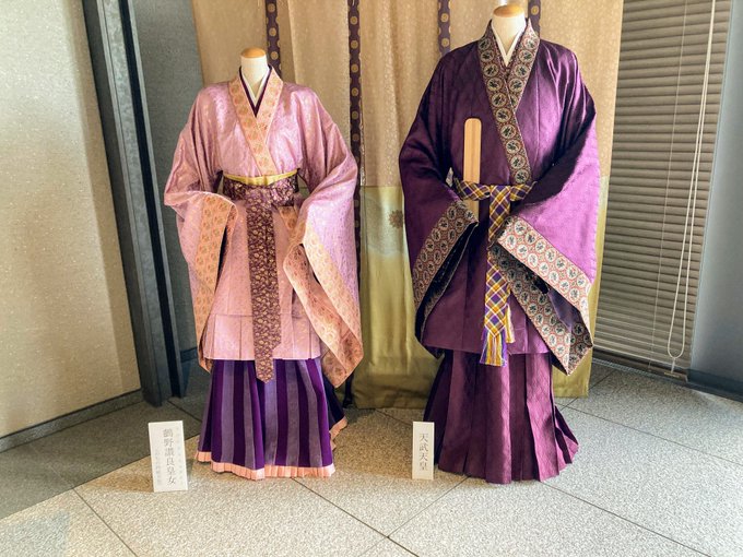 七月ちゃんズの衣装は高松塚の壁画とか事典の絵を参考にしつつ裾と袖を縮めてるのですが、男装のほうはいまいち判らないままえいやっと描きました。で、その翌日にこちらの展示があるのを知って、行ってから描きたかったわー、と思ったことでした。