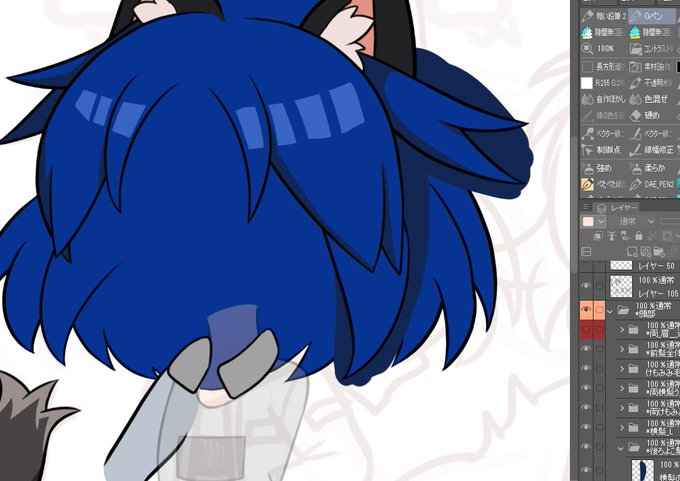 画像は、動くパーツの落ち影を塗っているところです(線画はまだ途中……)。