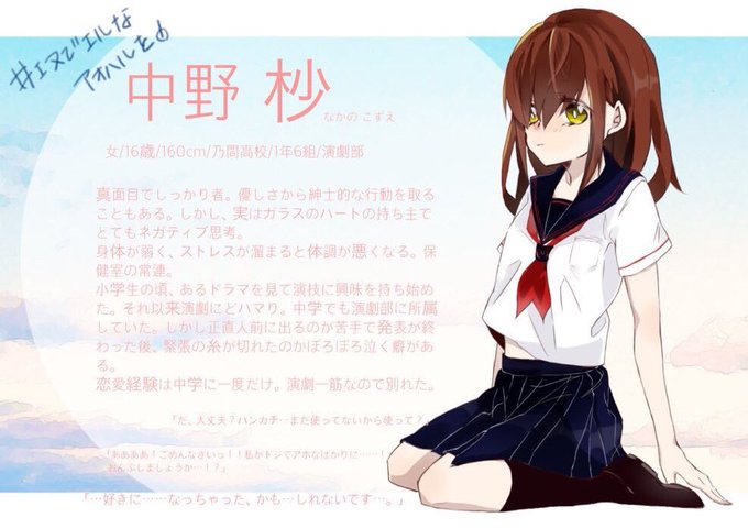 @NLah_TL こちらの企画【@NLaoharu 】に三人目失礼いたします~ 先日出した栗花落絲の姉です またコミュ障気味ですがどうぞよろしくお願いします~ #エヌハル_CS #エヌハル_乃間高校 #エヌハル_乃間_3年6組 #エヌハル_軽音部
