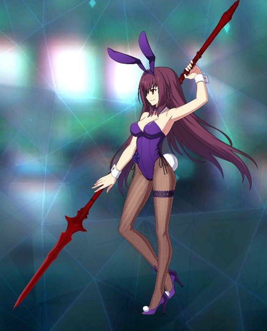右:刺し穿つバニーの槍構え。ゲイボルグは背後に置ける。