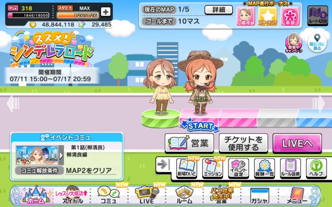 デレステ:イベント-進めシンデレラロード あまり頑張らず周回。小春ちゃんがスタラン15に、まひろちゃんがスタラン5でイベント終了。 次のアタポンイベに備えて、体力温存しました。