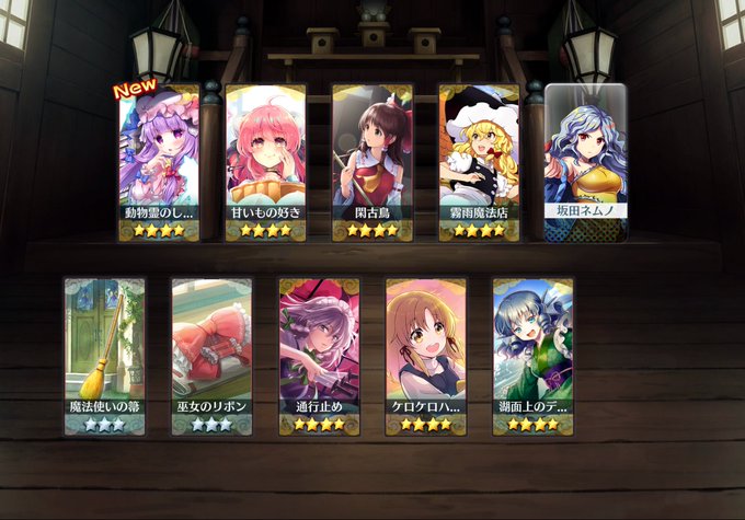 ロスワ。超フェスの子ども幽々子を狙って10回おいのり!新しい絵札「動物霊のしわざ!?」とネムノが引けたが、限定キャラは出ず・・・。それにしても、おいのりで未所持の絵札がよく出るなぁ