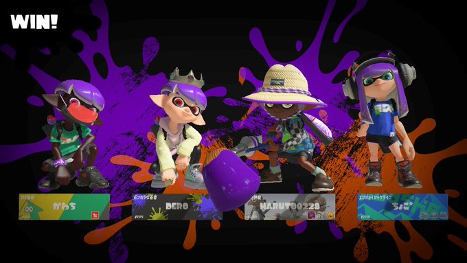 ヴィラン「20時50分から1試合だけだけどフレンドのかわさんとナワバリバトルをやったぜ😊めちゃ久しぶりに遊んでくれてしかも同じチームで同じ勝利ポーズできて嬉しかった😚💕俺以外皆フェスTなんだけど😂めっちゃ楽しかったぜ😆また遊んでくれよな🎶」