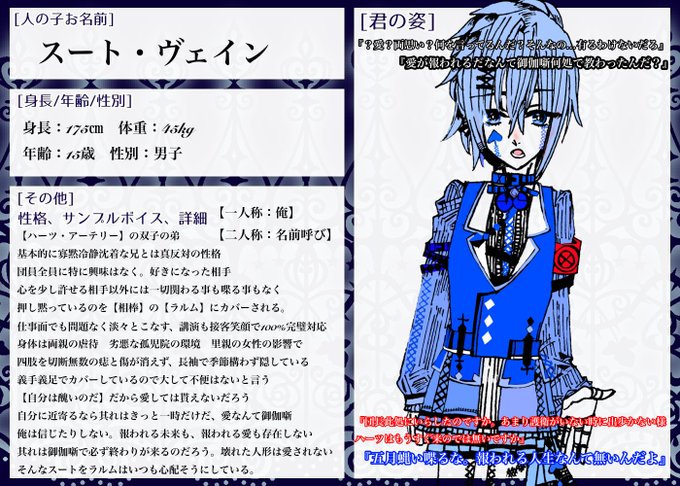 仕事は真面目にこなすし、礼儀正しい!だけど心の黒い部分がちょくちょく見え隠れしてしまう、双子の片割れのことが大好きな青年です‼️