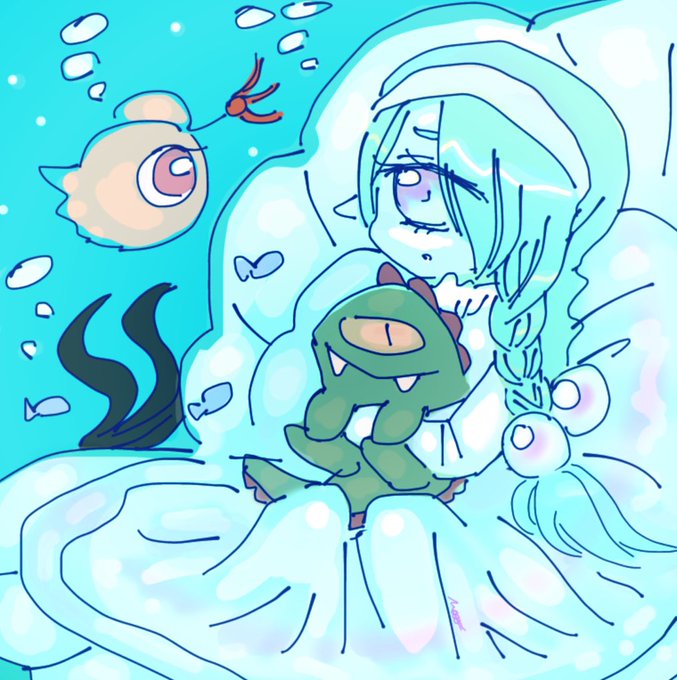 今日はちびマーシーが偶然遭遇したマンタに乗せてもらって海の仲間達と海の中のゴミ拾いに出かけている様子を書いてみました。マンタに会いたい❤️