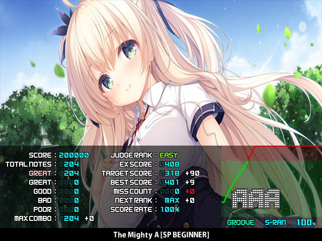 ☆2、☆5 The Mighty A それぞれ理論値、4個落ち! 理論値は1215個め! これ結構いい感じのスコアじゃない??? (こういう速いやつは割と光らせるの苦手)