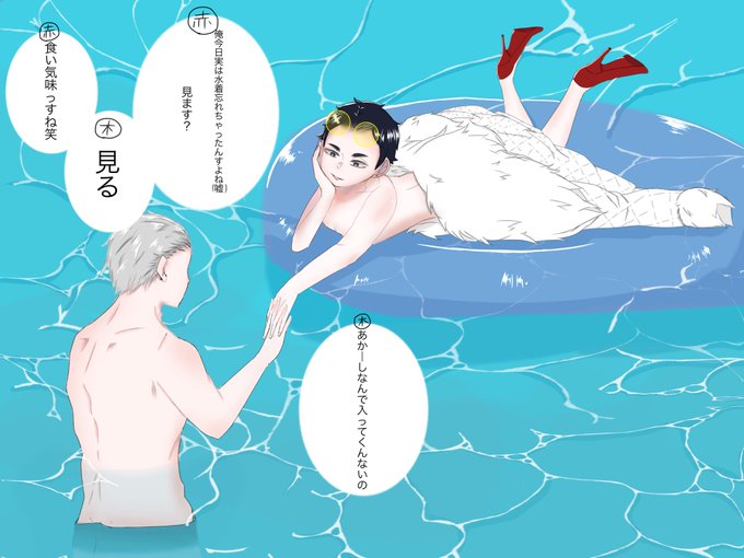 ちょっと背景無理だった😇 プールでこんな会話しててほしいっていう妄想 ⚠️若干マフィアパロっぽい⚠️ #ハイキュー絵描きさんと繋がりたい #兎赤
