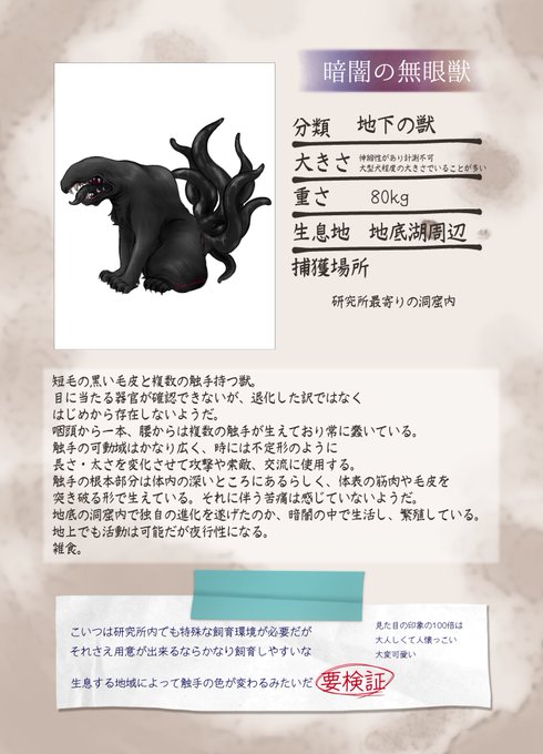 まっったく別の文明が一度荒廃した世界の幻獣研究施設で図鑑作ってることにするか?とか妄想して生まれた図鑑風のテンプレに当てはめた何か