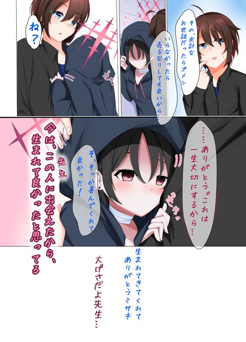これは2024年1月13日のミサキお誕生日合同誌に寄稿したミサキとお誕生日漫画です。なんでカラーなのかというとモノクロ原稿の描き方が分からないからです。抑え気味にエゴを放出しました。