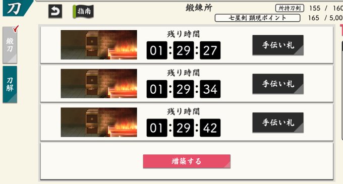 鍛刀イベ始まったあたりから散歩ピンのために近侍コロコロ変えてたんだけど、たまたまなんとなくで近侍を伽羅ちゃんに変えたらまじで七星剣連れてきた……