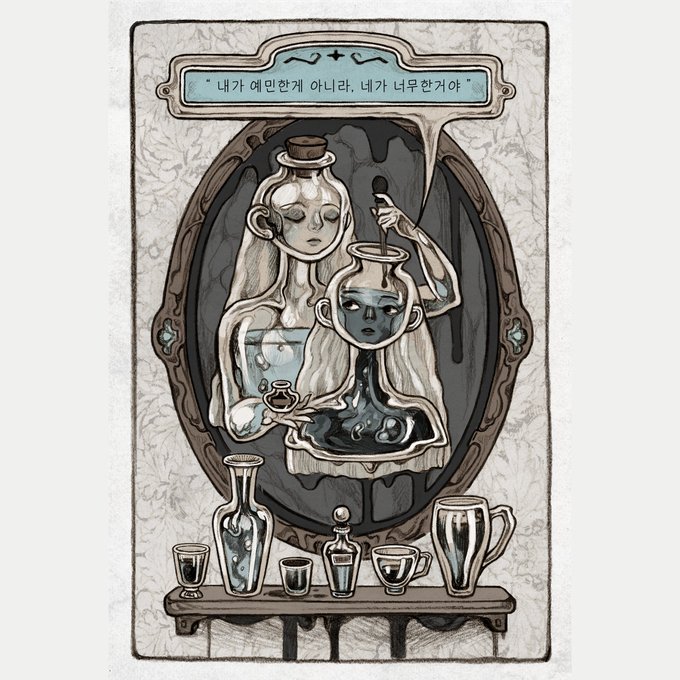 너는 '고작 잉크 한 방울 가지고 왜 이리 예민하게 구느냐' 했지만, 네가 떨어뜨린 잉크 한 방울이 내 물을 온통 시커멓게 물들였단 걸 아는지.