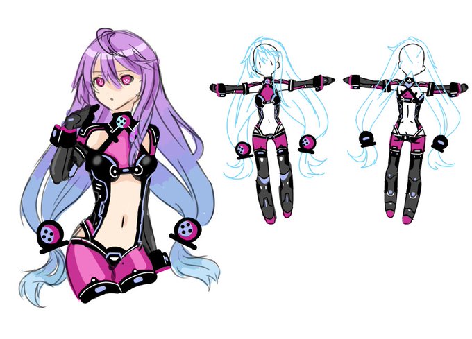 The only other thing at the time completed was Pluna, an OC candidate that was supposed to be the Nepgear for Plutia. Thanks to a friend (inabashime) for drawing these, along with helping during the conception of Pluna, a base and HDD form was created for the candidate.