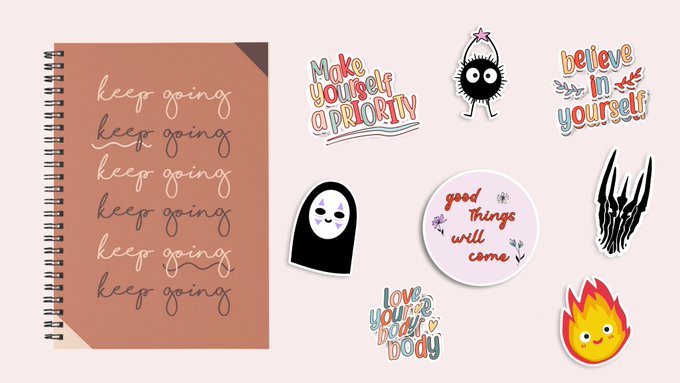 Hi, I'm Marta and these are some of the prints, tote bags, journals, stickers, mugs, etc that I have available in my shop.