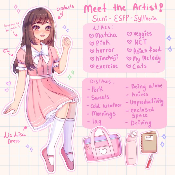 Hellooo my name is Suni, I’m an ESFP, Virgo and a syltherin!! My latest obsession is NCT 💕💕I’m also obsessed with pink and Himekaji clothing ✨#MeetTheArtist #MeetTheArtist2020 #pinkartist #pinkart #pinkaesthetic #aestheticart #artchallenge