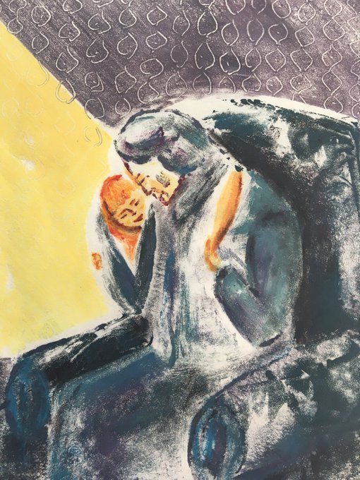 Version 2, UNFINISHED and left to dry over the weekend. I'll return to this (and Version 1) on Monday. Inspired by @WATBandits @TheGrandVenue #willeandthebandits #monoprint & #mixedmedia #letthemusicplay