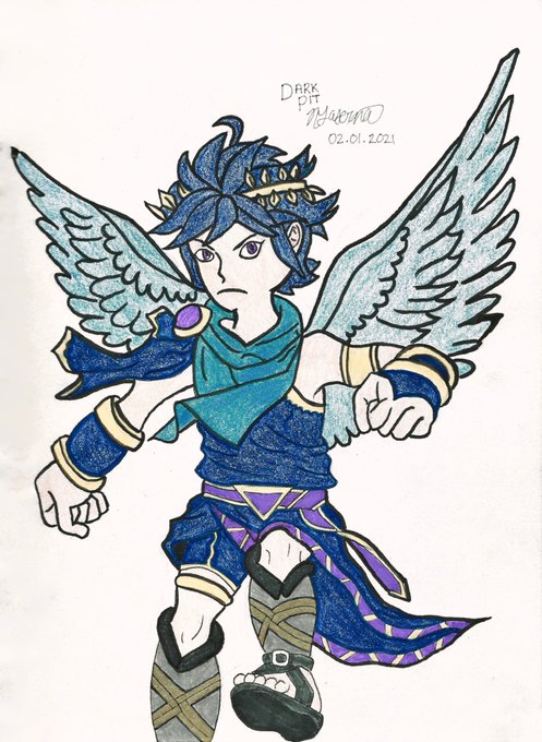 Part 7 of my Smash Bro’s Art Series: Dark Pit! Had a lot of fun playing around with pencil crayon textures in this one. We’ve got 3 more parts left in the series ☺️ #SmashBrosUltimate #SmashBros #DarkPit #KidIcarus