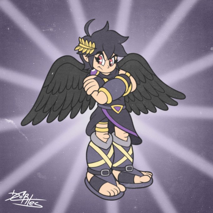 Day 69 of drawing every #SmashBros character in a style inspired by #Cuphead/ #Rubberhose/ #1930sCartoons!! It’s #DarkPit! He’s mad I didn’t draw him with a weapon lol. To think this guy’s origins was as an alt in Brawl, only for him to bash out of Pandora’s mirror in Uprising!!