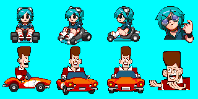 MY SRB2KART CHARACTER PACK HAS UPDATED WITH 2 BRAND NEW CHARACTERS!!! race as ramona flowers, clone high's JFK, and 13 other racers with pixel art by me! download at the srb2kart message board- https://t.co/4I8Tf3nSrM