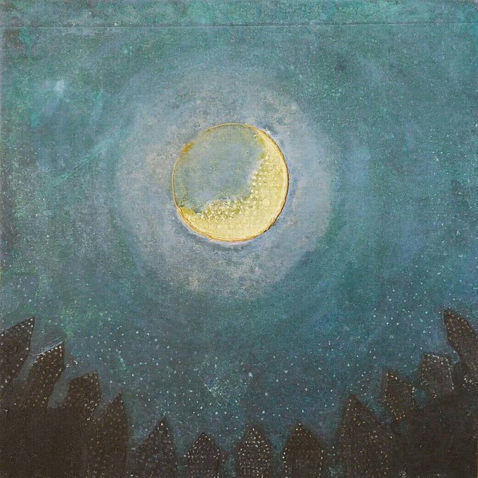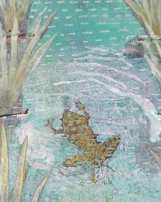 いろいろ画材を組み合わせていますが岩絵の具で描いた日本画作品です。