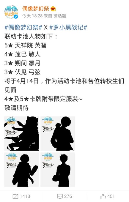 4월 14일, 이벤트로서 카드와 전학생 여러분들이 만날 것입니다. ★4 및 ★5 카드는 한정 의상이 포함되어 있답니다~ 기대해주세요!